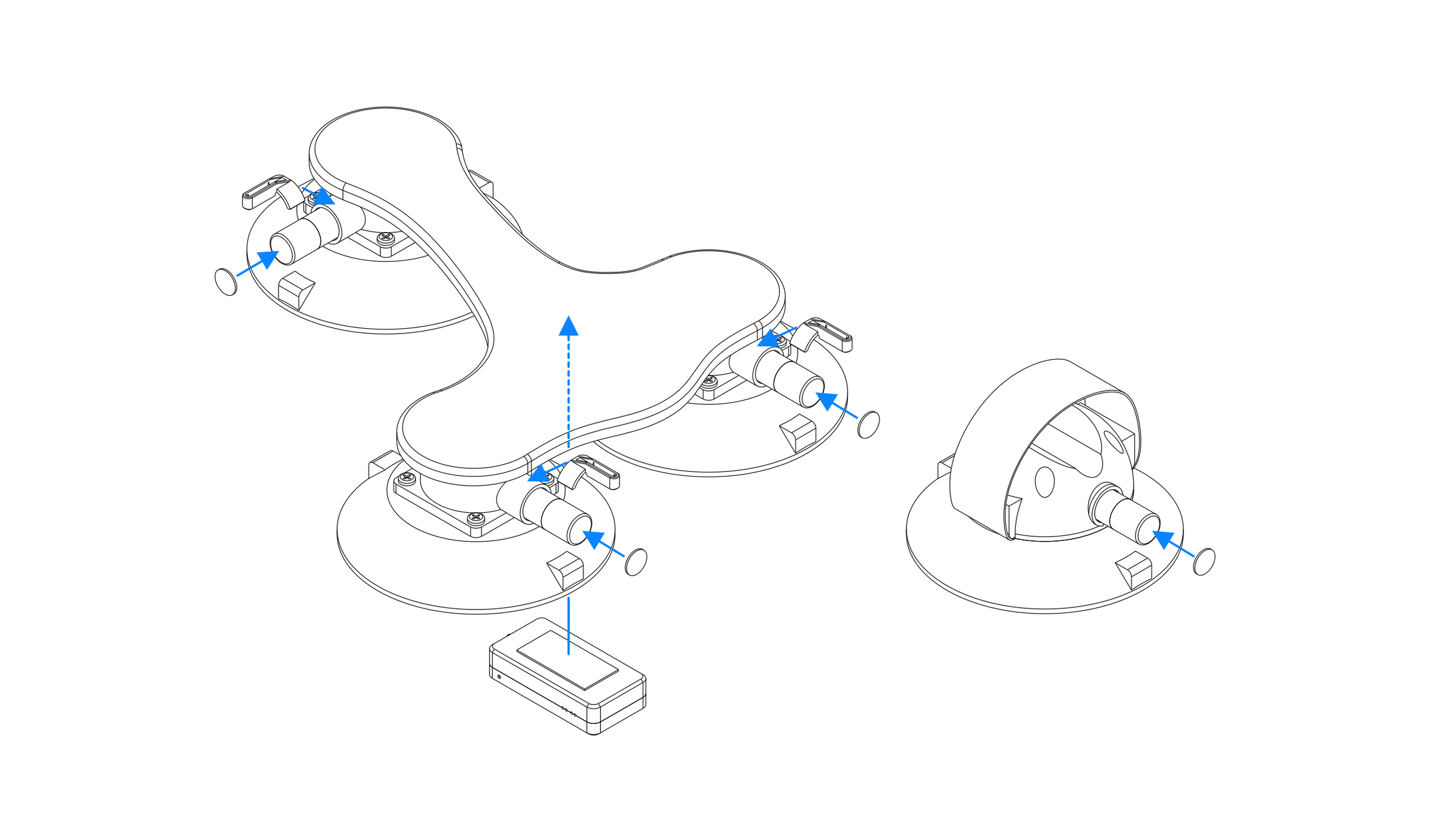The device is connected to the magnetic sensors that monitor the vacuum plungers (wires not shown in illustrations).